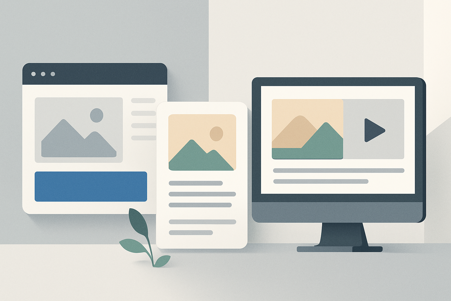 ディスプレイ広告は、配信される媒体やデバイスによってバナーの表示サイズが変動するため、レスポンシブ対応のデザインが必須です。レスポンシブデザインでは、画像やテキストが自動で調整されるため、1つの素材で多くの配信枠に対応できます。その際に注意すべきポイントは以下の通りです。